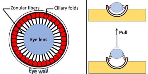 They deleted genes of interest from the mouse eye and assessed the resulting tensile strength of the zonular fibers. To do so, Rathaur and colleagues slowly pulled on the lens while measuring the force that the zonular fibers could withstand and the distance they could stretch before breaking. Their results point toward putative disease mechanisms and give insights into potential therapeutic targets that may be explored in future studies.