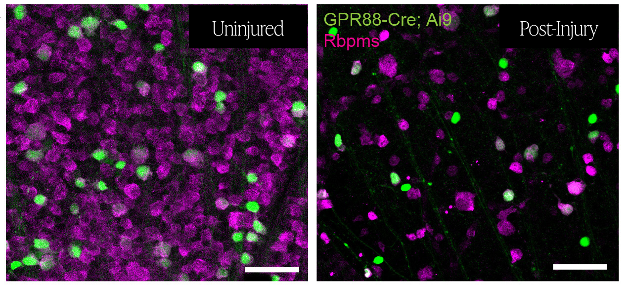 With the identities of the GPR88-expressing RGCs in hand, Hall and colleagues sought to characterize how well each of these 5 RGC types survived following injury to the optic nerve.